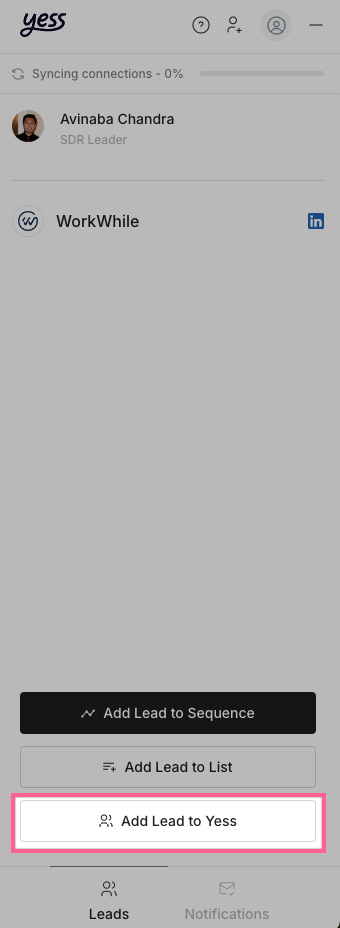 Click “Add lead to Yess” from the extension menu
