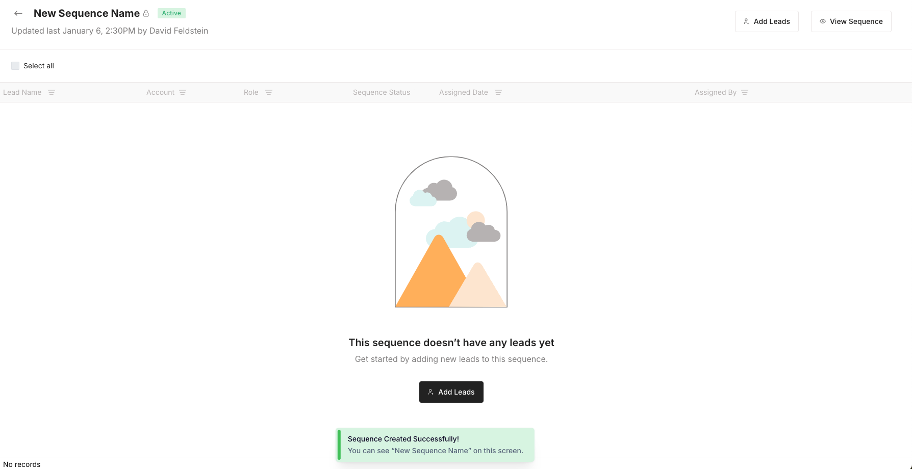 if you didn’t add leads to your sequence in the previous step, you can add them later by clicking on the sequence and then clicking “Add Leads”