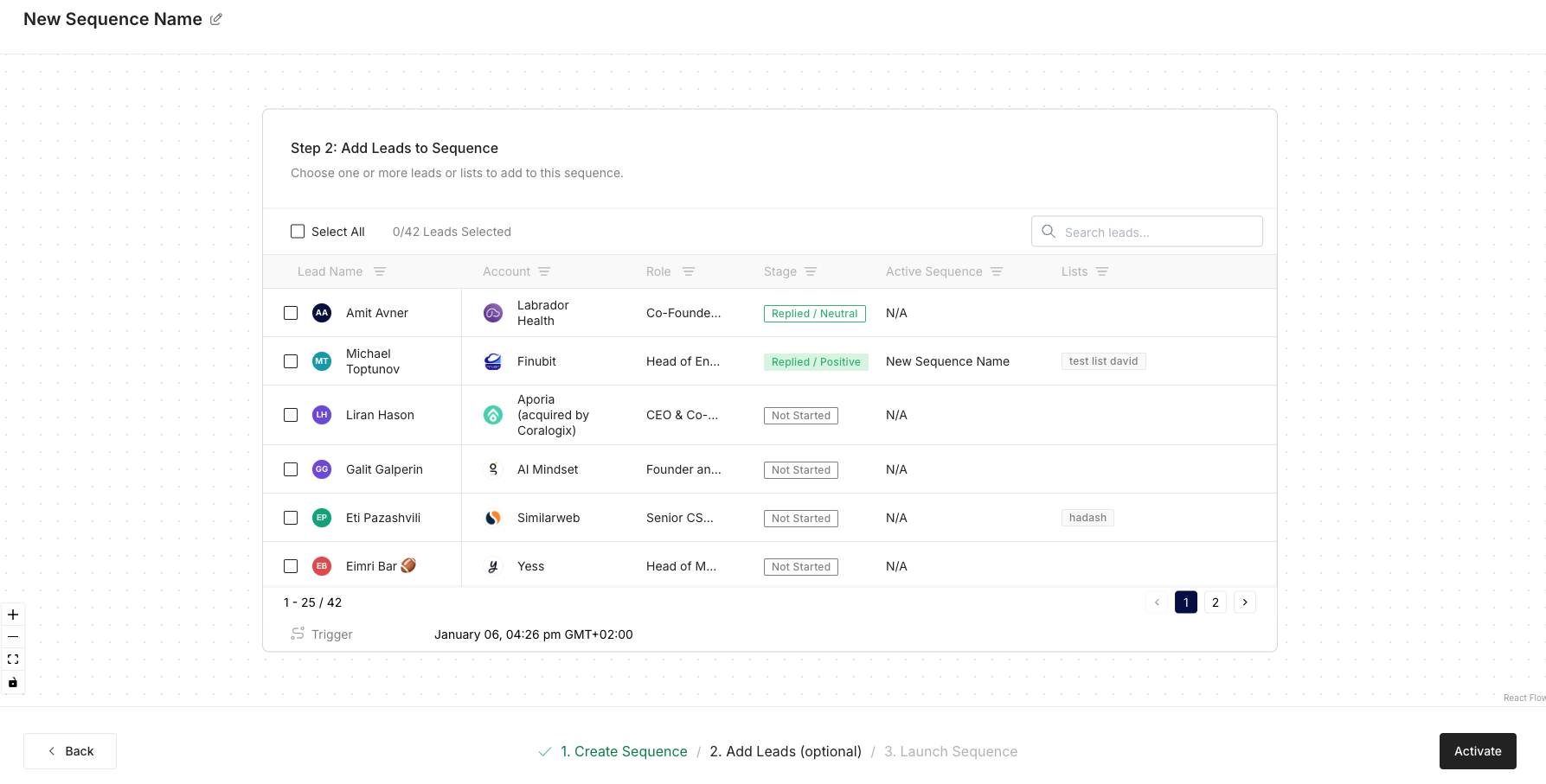 Add leads to your sequence