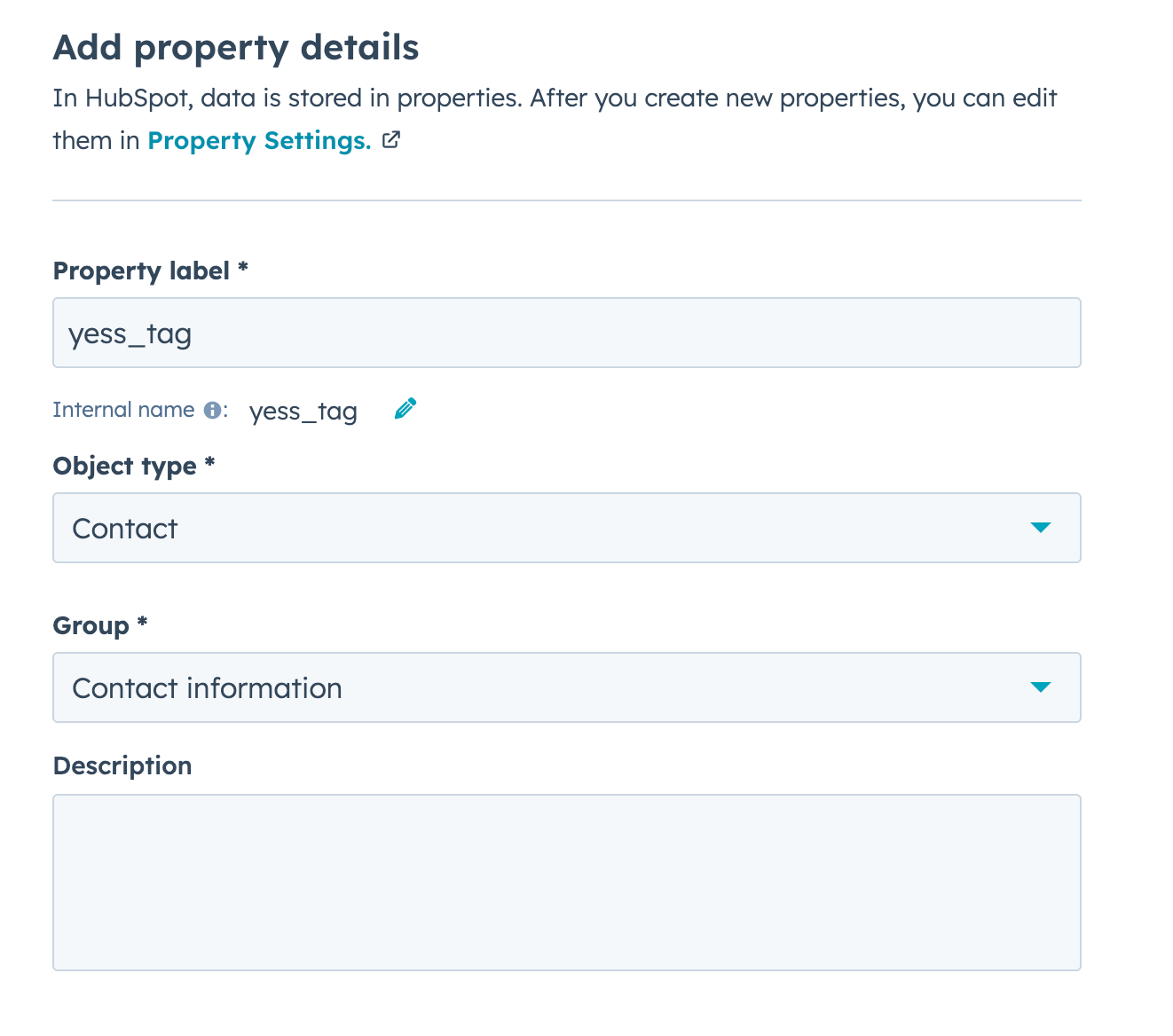 In case you don’t have a predefined criteria to sync, you can create a Yess Tag custom property on Contact, Company, or both objects to ensure proper synchronization between HubSpot and Yess.How to create a custom property: https://knowledge.hubspot.com/properties/create-and-edit-properties