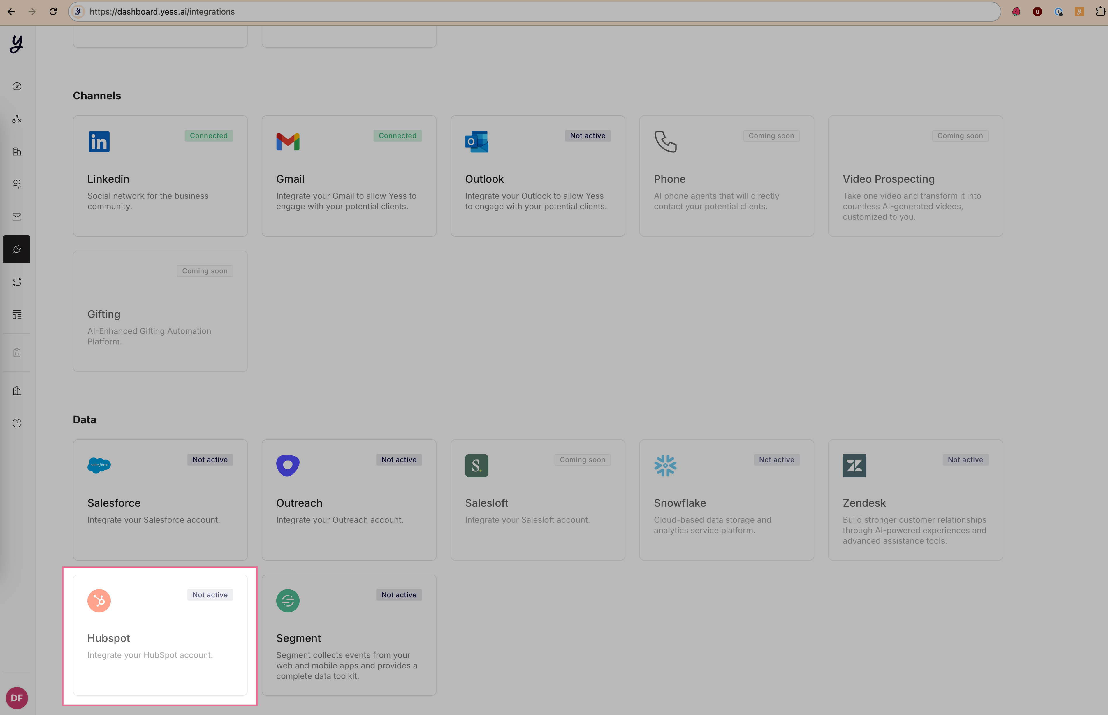 After your HubSpot administrator has connected Yess to your organization’s HubSpot account, each individual user needs to connect their own HubSpot user account to maintain proper lead ownership during synchronization.Connect your personal HubSpot account