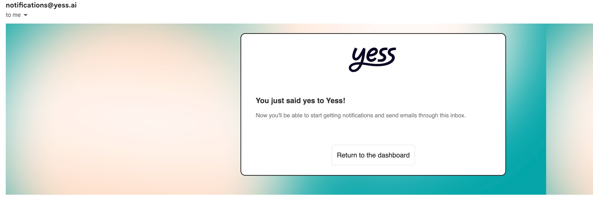 Look for a confirmation email from notifications@yess.ai