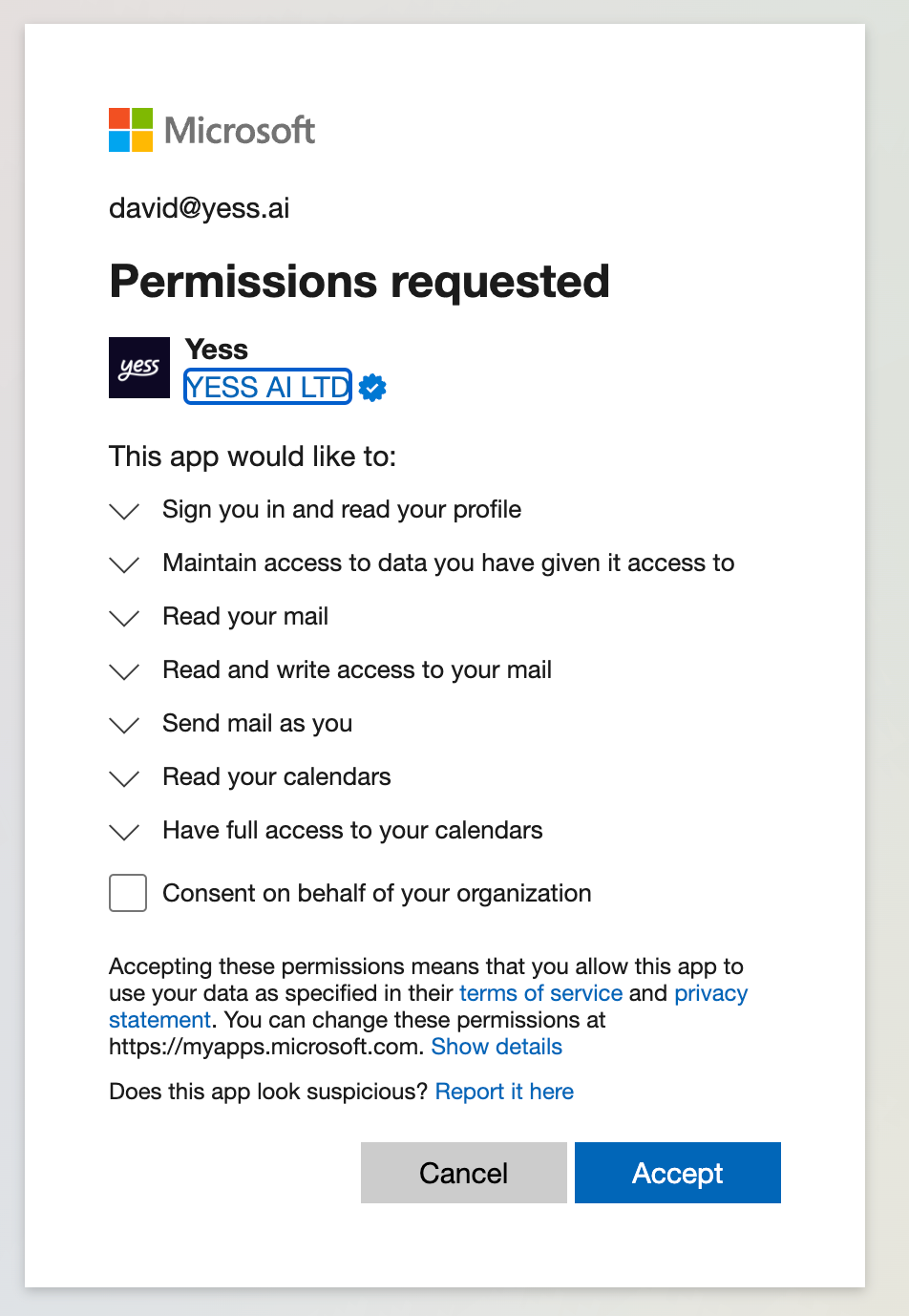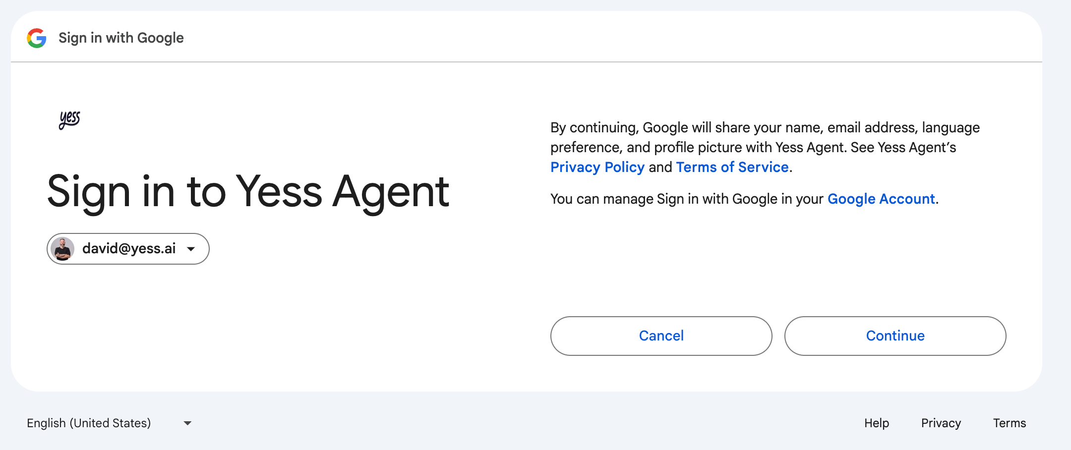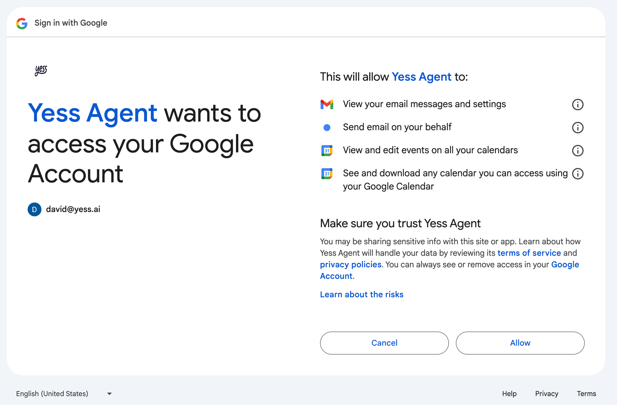 Click “Allow” to grant Yess Agent access to your mailbox