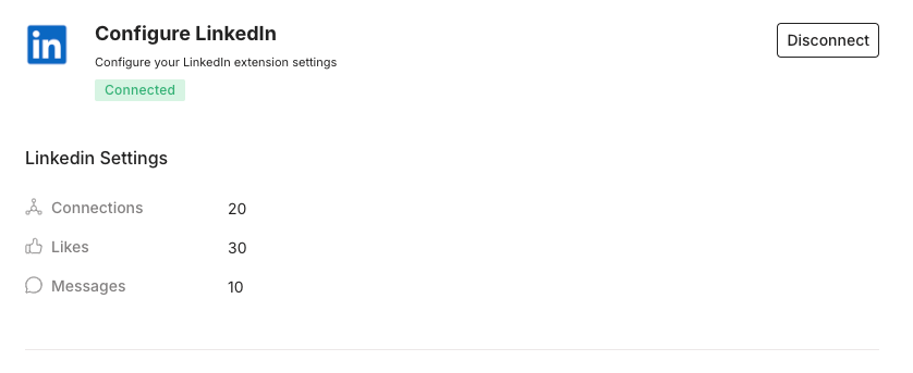 You can configure your LinkedIn connection settings in the Yess dashboard