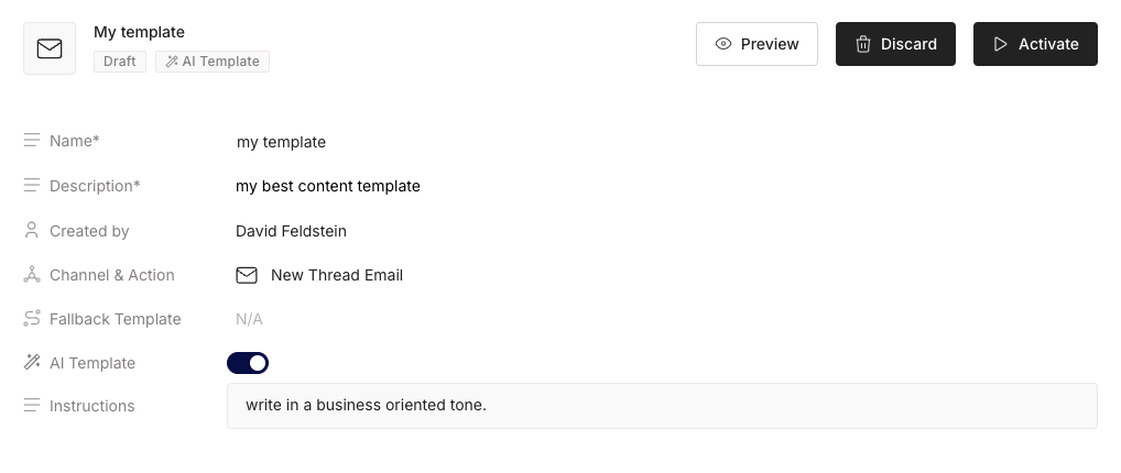 - Instructions: Specific guidance for AI content generation (required if AI Template is enabled)
